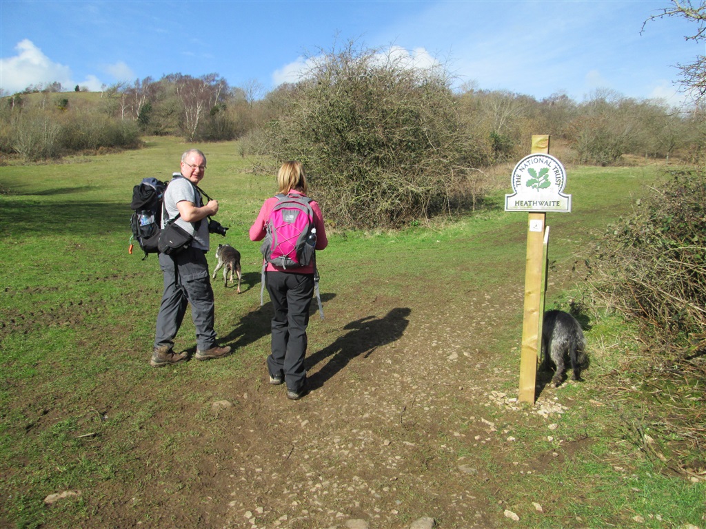 | Me, Harvey, Sue and Jess step on to Heathwaite and begin the ascent of Arnside Knott (Photo: Andy) | |||||||