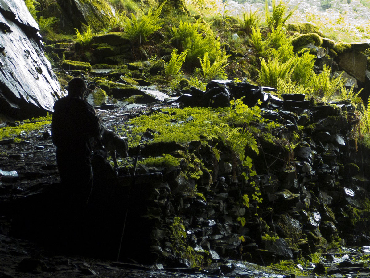 The aim of this walk was to explore Millican Dalton's cave. Dalton was a man who, for a time between the two world wars lived in a cave on Castle Crag. We intended finding his cave! I met Andy and Paul at a lay-by very close to M6 Junction 33. From there we drove to Borrowdale. We parked up just before the bridge at Grange and started our walk from there. There had been heavy rai and the river had earlier flooded so the river side path was not passable. The weather was dry but very dull and dank as we entered Grange. We decided to climb the summit first before descending to find and explore Dalton's Cave. With hindsight it would have been far better doing it the other way round; for as we reached the slate section to gain access to the summit, the heavens opoened and we got thoroughly drenched - even with waterproofs on. After we left the summit and eventually found his cave the rain stopped!! Typical. Dalton's cave is not impressive. It has two levels, the higher of which he called "the attic", and it was here he slept. It is very open. The lower and larger cave is large, dark and damp. Not a place to linger. The cave has two openings, both large and therefore the cave could never retain any warm. Leaving the cave we stepped into lovely sunshine and dried out as we made our way back to Grange. On the way home we stopped off at the Sportsman's Inn for a well earned beer. An enjoyable walk that the rain couldn't ruin. |