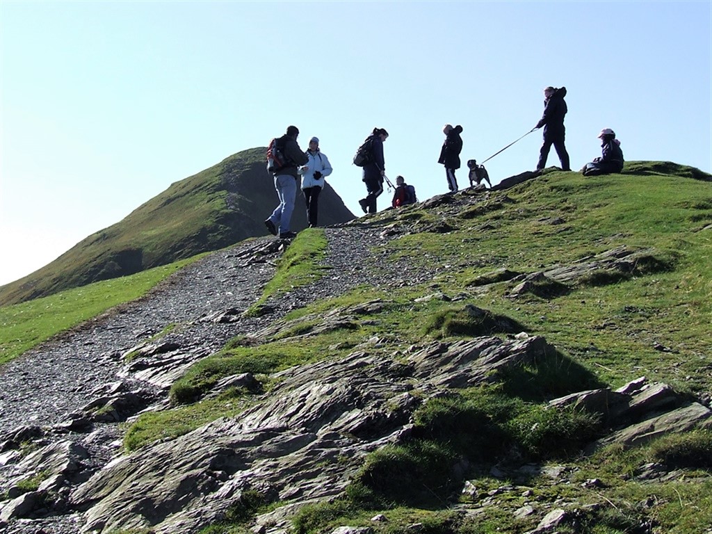 This walk was done by 13 colleagues, family and friends to raise money for the above hospital. For many on this walk, it was their first experience of fell walking. The party had 4 children ranging from aged 6 to 12 and they were fantastic. For an experianced walker it's considered one of the easier walks, for novices it is the perfect fell to gain experience. Its steep start, its superb ridge, followed by paths above steep slopes and some scrambling near the summit make this an ideal fell to introduce them to the delights of fell walking. However, slips and falls can happen to anyone and 13 turned out to be unlucky for one of our party, as Pam slipped on the very steep descent from Hause Gate. Thankfully after a check over at Kendal Hospital, no bones were broken, and so she limped into work a little late on Monday morning. |