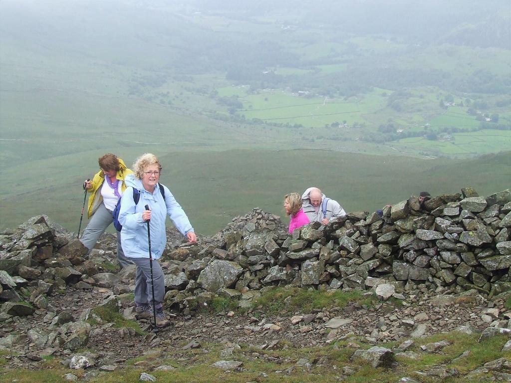 | Some of our group wait at the col before the 510 feet climb to Coniston Old Man's summit | |||||