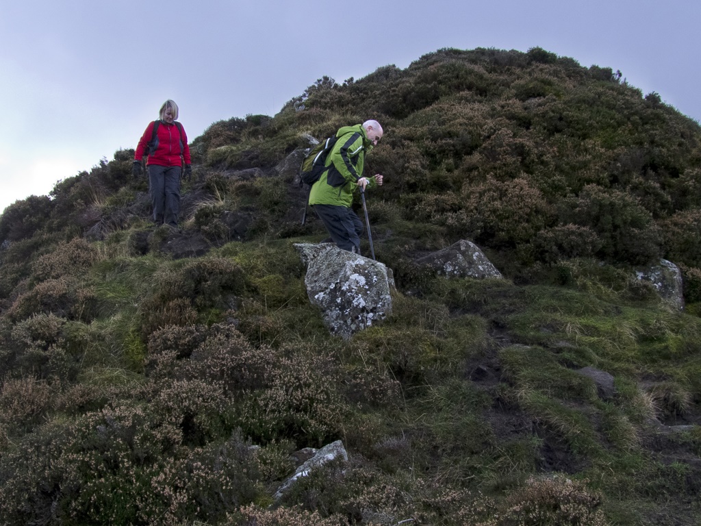 | Paul and Susan make the tricky descent from Gowbarrow, cleverly avoiding the easy path to their right!! | |||||||||