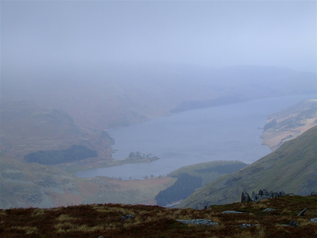 It was fine as we left Leyland at 8.00, but I'd seen the forecast and it was not a good one for Cumbria. And so it proved. We made good time to Sadgill arriving around 9.30 - but unlike our last walk, it was not raining as we set forth! It's quite a walk along the valley floor before the steepish climb begins and the track zig zags up towards Wrengill Quarry. Troy was loving it as he had been off the lead all the way to the quarry, but then he was put on a lead as several sheep grazed in the flattish area known as Brownhowe Bottom. However, he was soon off again and we made the final steep push to the top of Gatescarth Pass. At the top we turned left and began the final climb to Harter Fell's eerie summit. Suddenly to our right wonderful views of Haweswater opened up, unfortunately so did the rain and wind. It became bitterly cold. Going in my rucksack for Troy's coat I realised I'd left it in the car. We carried on for 2 minutes then Troy really began to feel the effects as he has a very thin coat. He was shivering and whimpering so I told Paul and Susan to carry on and I would return to the car and get Troy out of the severe weather. After five minutes or so as Haweswater disappeared from view, Troy and I were at least more sheltered, and the wind died down and the rain eased considerably. Susan and Paul reached the summit in awful weather with little or no visibility and then made their way back along the same route. Troy and I got back an hour before them and we put the car heater on and had lunch and a cuddle. As has so often happened, as we drove home the weather turned sunny as we reached Lancashire, where we were told it had been a lovely sunny day. Oh well better luck next time I hope |