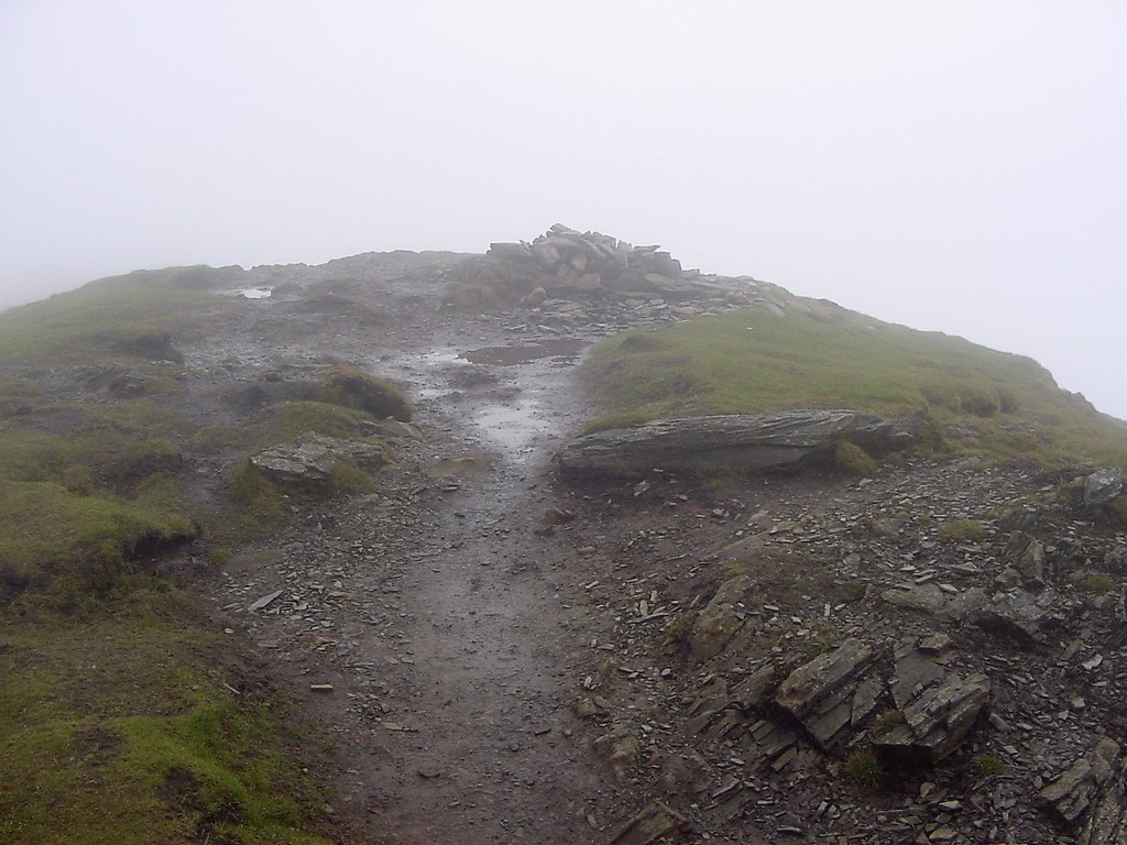 | The weather improves on the descent - this is looking back to the summit | ||||||||||