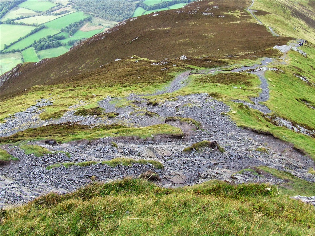 | A section of the steep path we have climbed. Note the fields way below | ||||||||