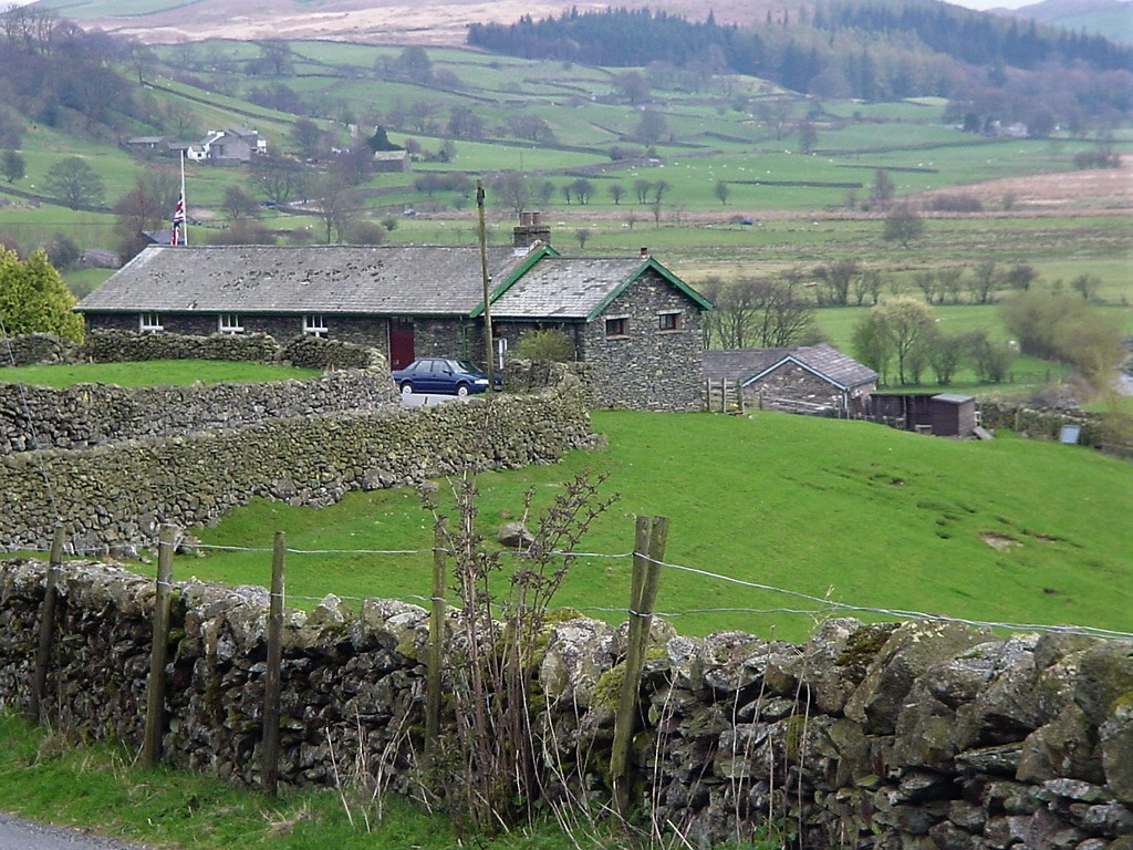 | Kentmere Hall and the hillside, path we would soon be taking up to Garburn Pass |