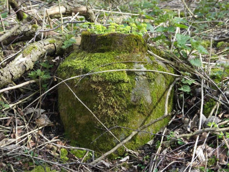 The base of a signal post in situ (Grid ref SD647 242) on the high embankment . The