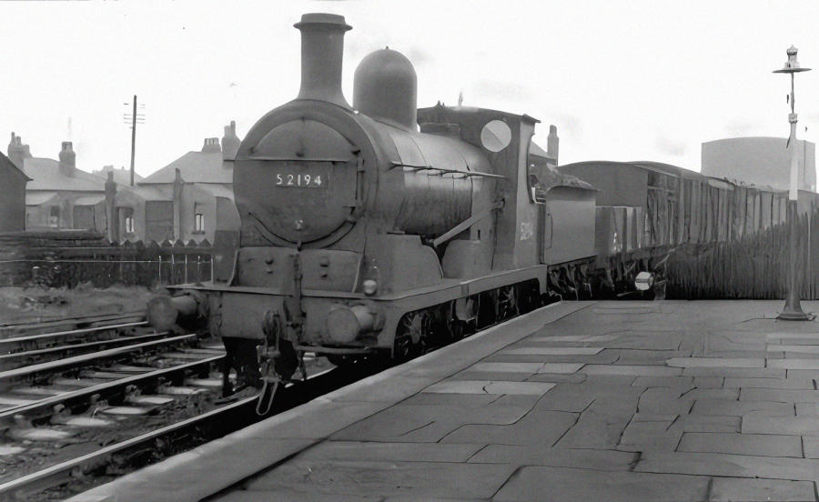 Ex LYR 0-6-0 No 52194 coming off the Blackburn line, pulls a goods train into