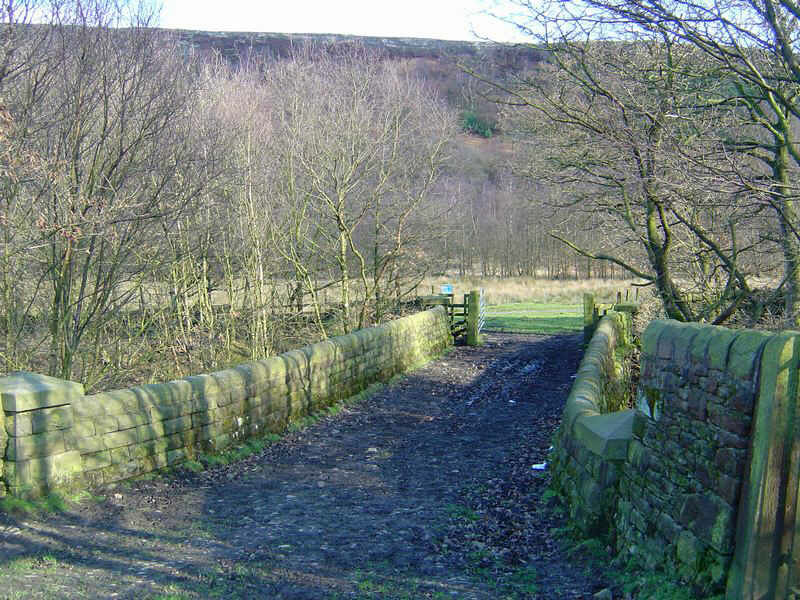 | Looking up Grange Water (Dean Black Brook on recent OS maps) towards the moors