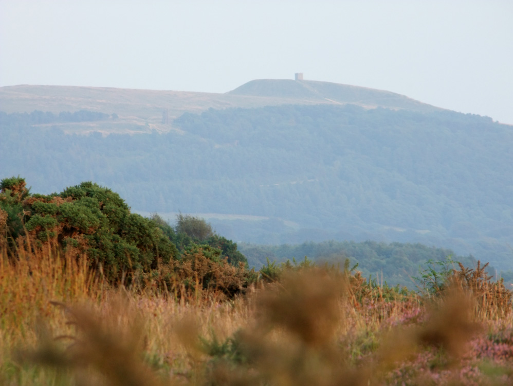 Through the haze, Rivington Pike. Taken from near Grey Heights cairn