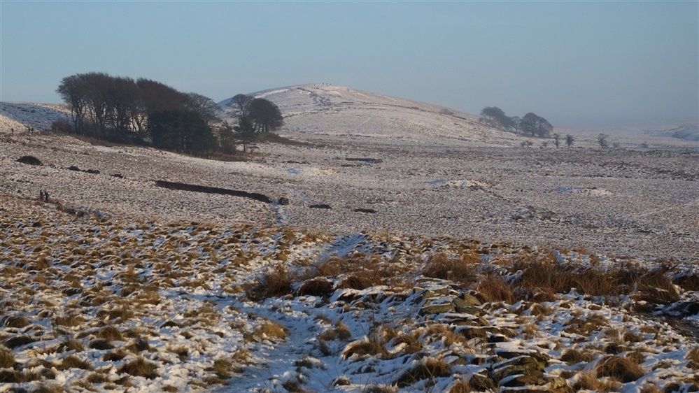 Today was a stunningly beautifil day and at 3pm Harvey and I set off from White Coppice for Great Hill. The temperature was only just above freezing point and after the cold frost of last night, conditions underfoot were quite slippy; and as I neared the bridge to cross the Goit, two Mountain Rescue landrovers were there. The team hoisting a stretcher over the gate. A woman I think it was, had fallen on the path that slopes diagonally up the hill to Coppice Stile. It must be said - it was vey slippy on this section. Having safely made our way to Coppice Stile the views were phenominal. Blue sky, orangy brown bracken lit by the low sun, and snow, it was stunning. Without incident Harvey and I reached Great Hill summit and took in the vista. We safely made our way back to Coppice, arriving in semi darkness. A wonderful day. |